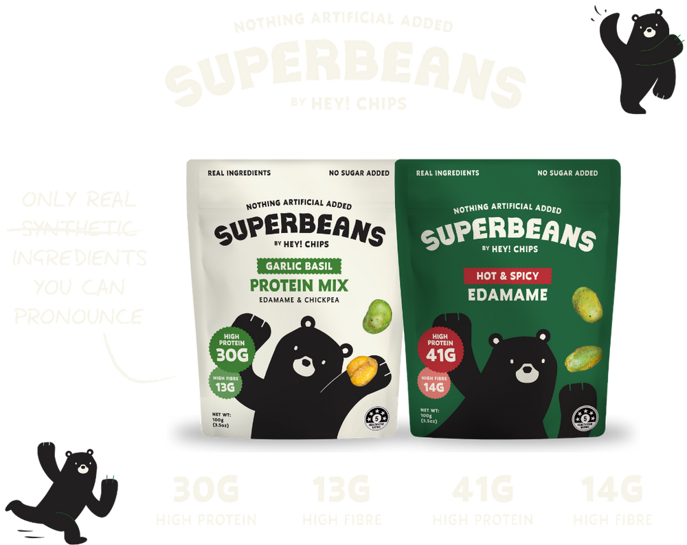The Superbeans delivers real protein from whole edamame and chickpeas, gently dehydrated at low temperatures, keeping nutrients IN and synthetic nonsense OUT.